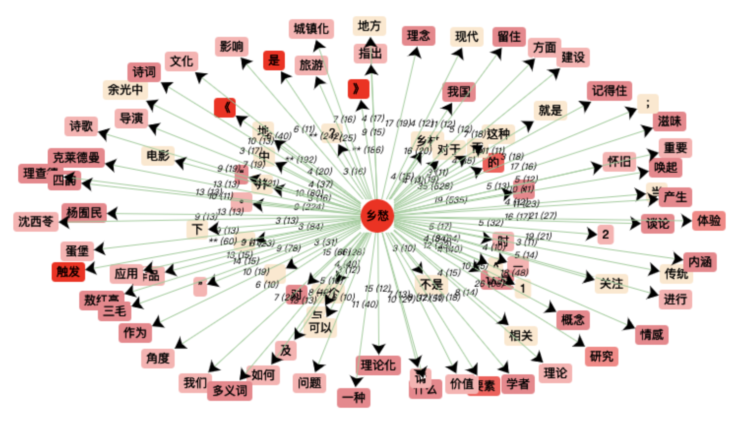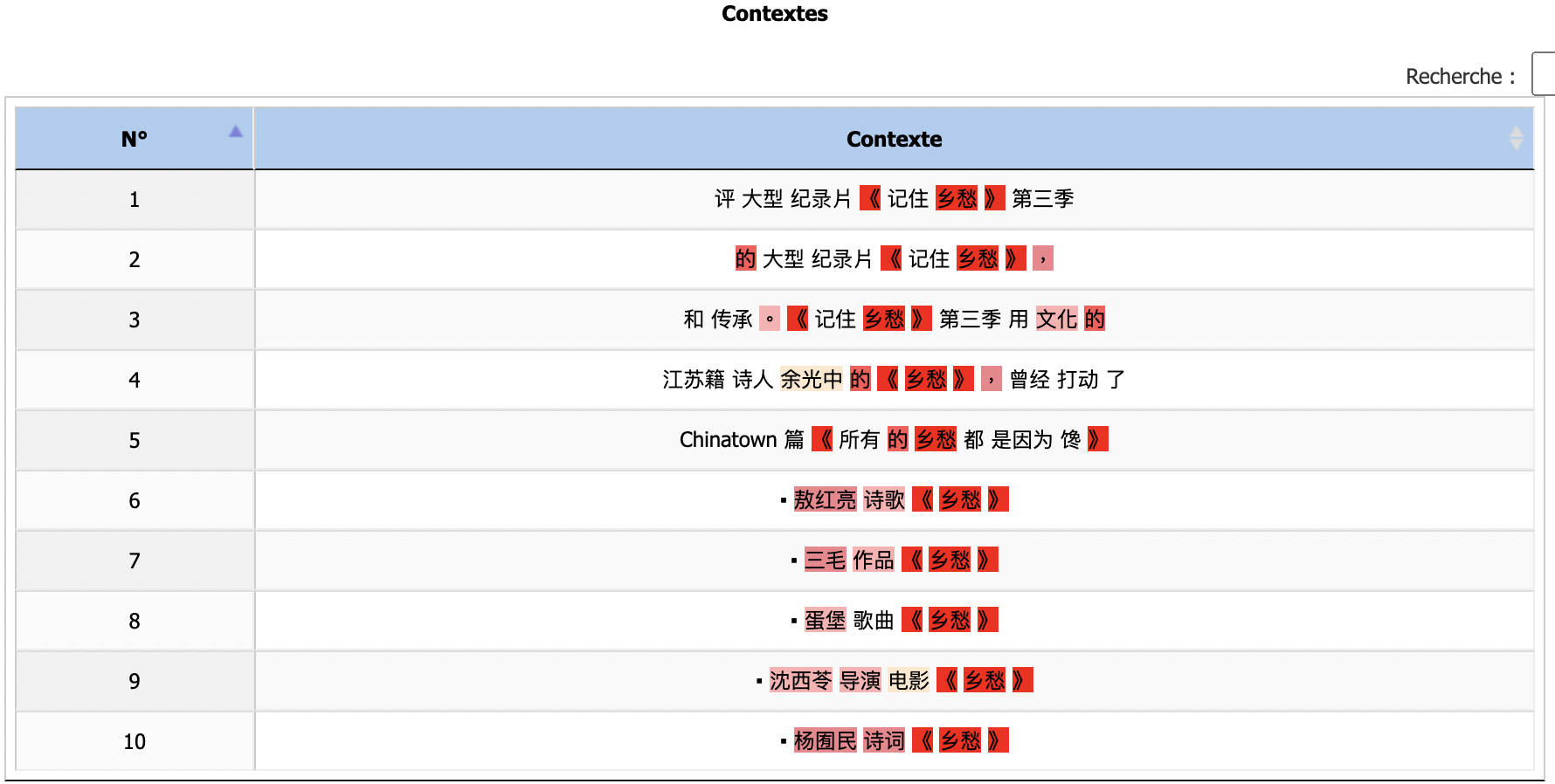 Nous allons maintenant dans le détail des cooccurrents de 乡愁.