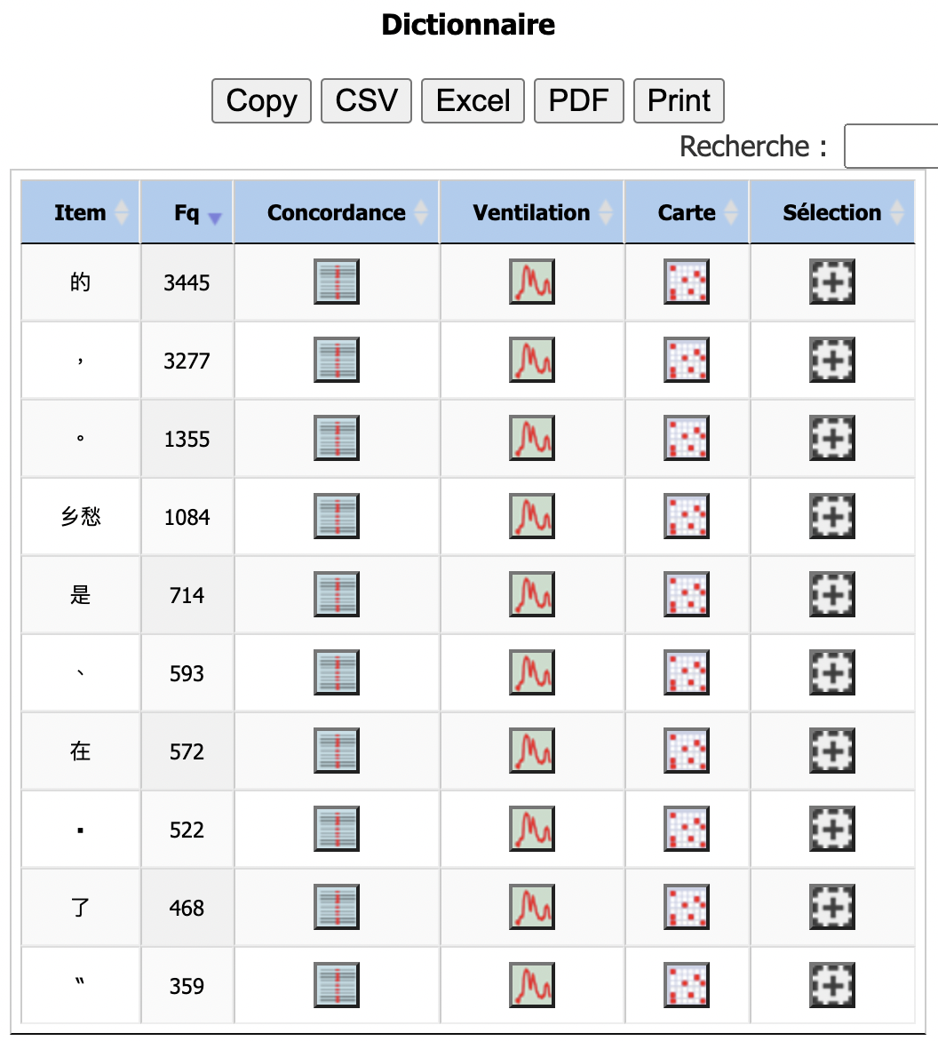 où nous avons recours au module JIEBA pour la tokénisation du chinois. Néanmoins, le fichier n'a pas été correctement chargé sur iTrameur. Par conséquent, nous ne pouvons que
